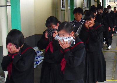 消防士の方から「お・は・し・も・ち」の話をしていただき、心した生徒たちでした。