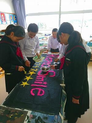 また、教室や美術室では明日の「駅伝・ロードレース大会」に向けて学級旗の作成を行っていました。