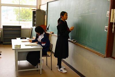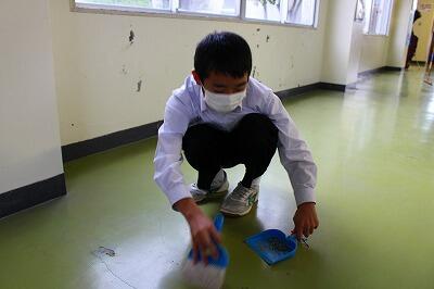 10分間の静かな時が流れ、廊下を掃く音やぞうきんを洗う音、机や椅子を運ぶ音が響き、みんな黙々と作業します。