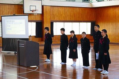 新年式の後は生徒集会が行われ、1学期の各委員会の取り組む内容についてプレゼンテーションがありました。