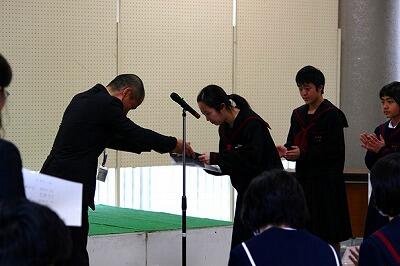 たくさんの生徒が満点賞でしたが、代表で各学年1名に賞状を手渡しました。