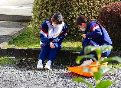 冷たい雨が降り始めた時間帯でしたが、保護者、生徒、職員で協力し、和気あいあいと作業しました。