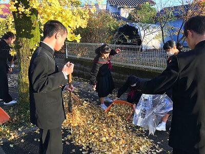 式場づくりを2年生が、外回りの清掃を1年生が行い、立派な式場が出来上がりました。