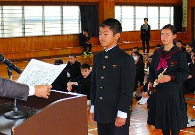 また、学力向上コンテスト(社会)で優秀だった生徒、えびの市の英語暗唱コンクールで優秀だった生徒も表彰しました。