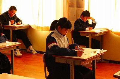 午前中は全校集会を行い、その後、1年生、2年生は、えびの市の実力テストを受験しました。