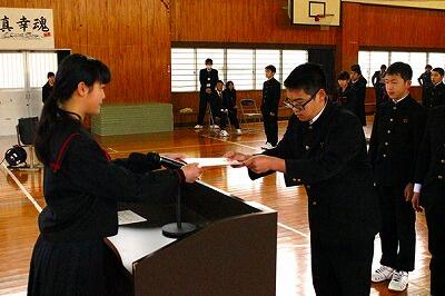 また、この日の生徒集会では清掃活動が優秀な清掃場所の表彰を整備委員長が行いました。
