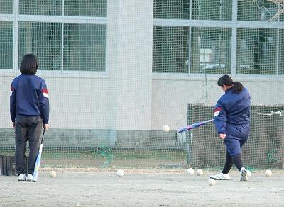 ソフトボール部はランナーを挟んだときの守備練習やバッティング練習を行っていました。監督がランナー役で走ってます。