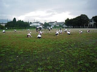 8月24日(土)の早朝7時から親子奉仕作業を行いました。約120名のPTA、生徒が集まり、主にグラウンドの草抜きや周辺の草刈りを頑張りました。1時間ほどすると雨が降り出したため、予定より早めに終了しましたが、きれいになった環境で気持ちよく1学期後半を迎えられそうです。