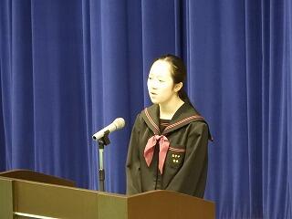 生徒一人一人による決意発表では、厳粛な雰囲気の中、全員が堂々と正面を向いて自分の決意を述べました。