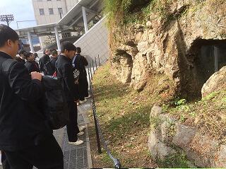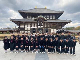 奈良公園に来ました。昼食後、二月堂に上がり、大きな東大寺、大仏様を見て来ました。観光客が少なくて多くの生徒が、柱の穴を通る体験をしました。