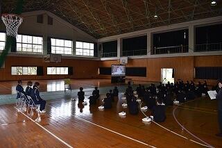 2月21日(金)に立志式・講演会を行いました。講演会では、えびの市長 村岡隆明 氏 から、「次世代を担う君たちへ!」という演題で、生徒たちにこれからの時代を生き抜くための示唆をいただきました。「利他の心を持ち、人に愛される人になるのではなく、人を愛せる人になろう」「幸せに気づく力を高めよう」「自分が生まれてきた意味をしっかり自覚し、自分のことを好きになろう」など印象に残る話でした。