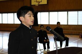 1年代表は4月に後輩ができることを踏まえ、立派な先輩になりたいと、2年代表は学校の顔として、学校生活でも部活動でも柱となれるような存在になりたいと発表しました。