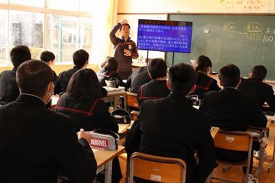 12月25日(月)の午前中、えびの市の中学2年生が全員、飯野高等学校に集まっての学習会が行われました。