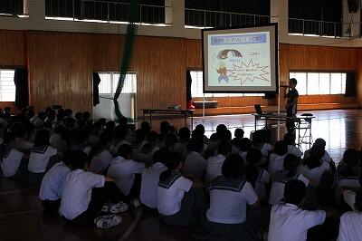 その後、「学校保健委員会」として、薬物乱用防止の講話を学校薬剤師さんに行っていただきました。