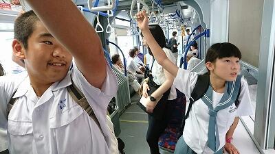 広島に着いて路面電車で移動中です。