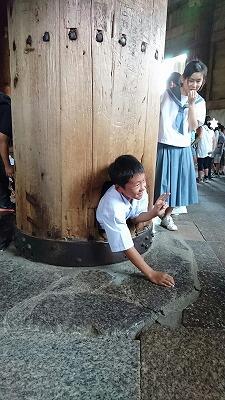 柱の穴を潜りました。奈良公園の鹿はかわいかったです。