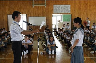 また、県の俳句大会に入賞した2名の3年生を表彰しました。