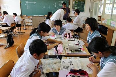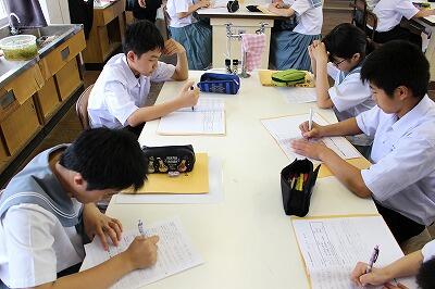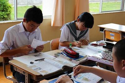 午前中、1年生は「えびの学」で、えびの市の歴史についてまとめ、各班ごとに発表会を行っていました。