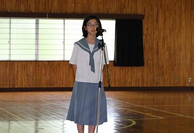 また、本年度の生徒会のスローガンもあわせて披露され、このスローガンのもとで1年間活動していくことを確認しました。