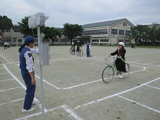 最初に派出所の方のお話、交通安全協会の方からの自転車指導を受けて、いざ実習です。
