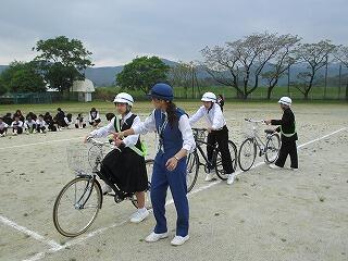 午前中に「交通安全教室」を行い、特に、自転車の乗り方について実地訓練をしました。