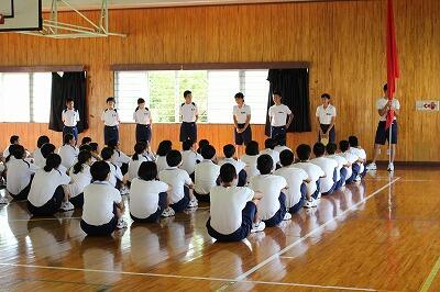 子どもたちは、もう夏服に衣替えして、涼しげな雰囲気での集会となりました。