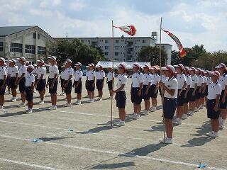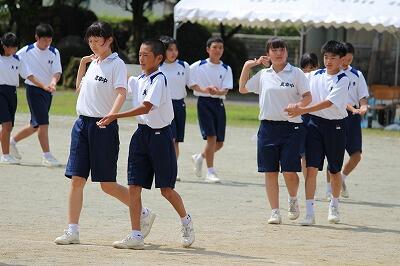 9月20日(水)の朝、正門前で1年生の元気な声が響いていました。