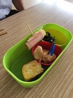1年生は、自分自身で持ってきたお弁当箱に、ハンバーグや卵焼きなどを作って詰めていました。