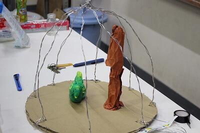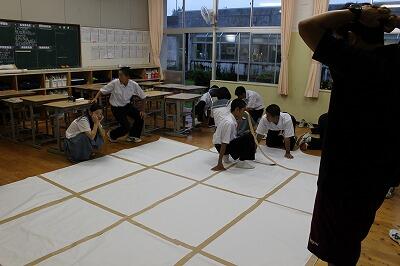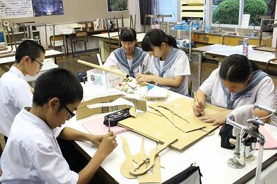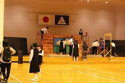 2年生は大道具は教室で、小道具は理科室で作業をしていました。