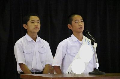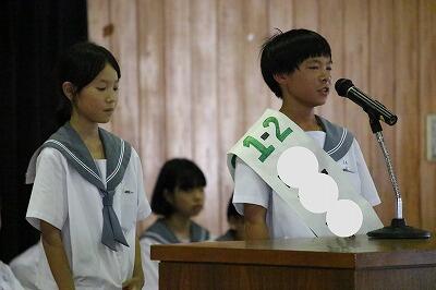 各学年、代表の意見発表をみんな、真剣な表情で聞き入っていました。