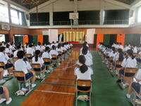 その後、校長先生が「夏休みに1つのステップを登り成長してほしい」と話をされ、集会が終わりました。