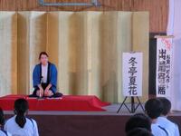 7月14日(木)に鑑賞教室(文化庁巡回公演事業による伝統芸能)を実施しました。東大卒の落語家 春風亭昇吉さんをはじめ6名の方々が、落語や曲芸などを交えた「おまちど〜!お笑いどんぶり『出前寄席』」を公演していただきました。