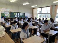 1校時の全校集会は、感染対策のためオンライン方式で行いました。各学年の代表生徒が夏休みの反省と今後の抱負を発表しました。そのすべてがしっかりとした内容で、感心しました。