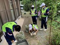 7月29日(金)に開催されたえびの市ボランティアセンター主催の「困りごとおたすけ隊」に、本校生徒19名が参加しました。生徒たちは4つの班に分かれ、真幸地区でひとり暮らしをされている高齢者宅を訪問してボランティア活動を行いました。ボランティアの内容は窓拭きや草抜き、剪定作業、屏のこけ落としなどです。厳しい暑さの中、参加した生徒たちは汗を流しながら、一生懸命作業していました。高齢者の方々も、とても感謝されていました。
