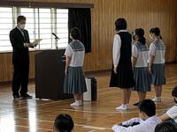 6月3日(土)、4日(日)、10日(土)、11日(日)に実施予定の西諸地区中学校総合体育大会に向けた選手激励式を、5月31日(水)に行いました。どの部もキャプテンが立派な抱負を述べてくれ、大会に向かう意気込みを感じました。