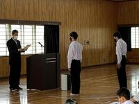 その後、校長先生が、「昨年度を振り返ってどうでしたか?」「今の自分に満足していますか?」と問いかけられ、「まだまだ満足するには早すぎる」「人からやらされるのではなく、自分から進んで行動しよう」「現状維持は後退である」「みんなで進化していこう」と話をされました。生徒たちはとても真剣なまなざしで話を聞いていました。