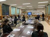 本校の高校説明会は、これまで一斉に集まって、全員で話を聞くスタイルでしたが、今回は、少しでも生徒たちが主体的・対話的に参加できるようにするために、ブース形式で実施しました。生徒たちは前半・後半と2つの高校の説明会に参加し、高校の先生の話を聞いたあと、質問をしていました。参加した職員からは、「少ない人数で、集中して話を聞くことができた」「もう少し生徒たちが質問できるようになるとよい」「進行役の生徒がうまく進められるような手立てが必要では」など、たくさんの反省が出されました。今回の反省を受けて改善するところは改善し、来週予定されている県立高校説明会がより充実したものになるとよいです。