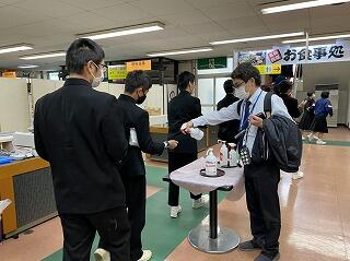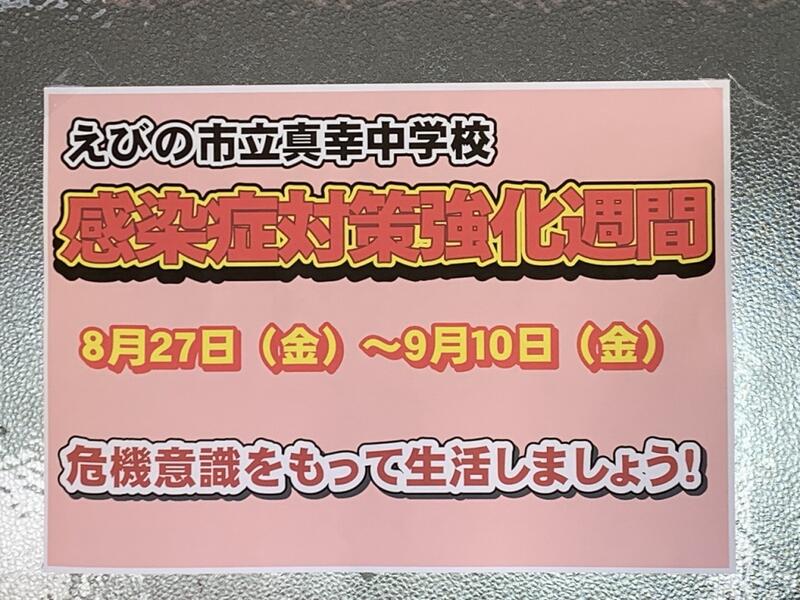 今日から2週間、真幸中は「感染症対策強化週間」を設定し、これまでの感染対策の徹底に加え、さらに強化した取組を実施していきます。その一環として、今朝も登校してくる生徒たちに対して靴箱で検温、および、消毒指導を行いました。できるだけの対策を全職員で講じていきます。