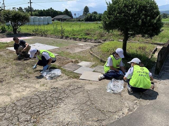 7月28日(水曜日)に、えびの市社会福祉協議会主催のボランティアが行われました。今回のボランティアは、「みやざきボランティア体験月間」に合わせて企画された「お年寄りの困りごとお助け隊」であり、本校生徒19名が参加しました。
