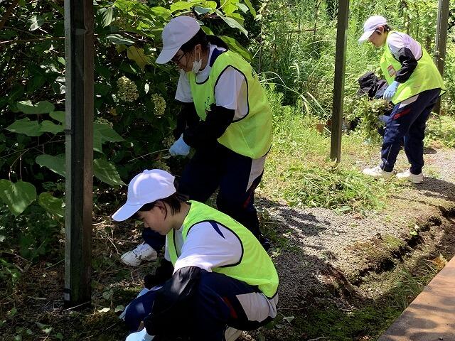 当日は30℃を超える猛暑の中、生徒たちは地域の高齢者宅での草取りや、福祉施設での窓ふき作業にとても熱心に取り組んでいました。終了後には、「喜んでもらえて嬉しかった」、「達成感があった」、「ありがとうと言われて嬉しかった」、「今後も積極的に参加したい」等の感想を述べていました。