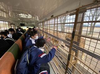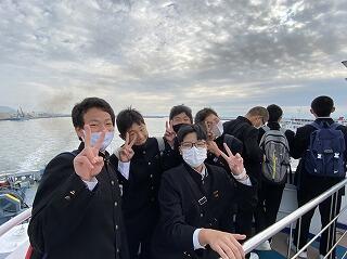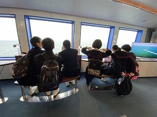 熊本港からフェリーに乗りました。初めての生徒も多いようで、デッキに出て楽しんでいます。