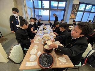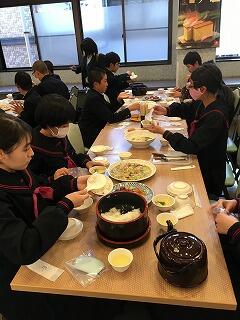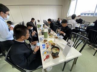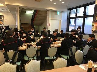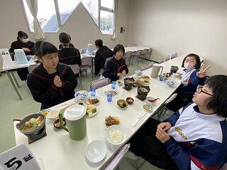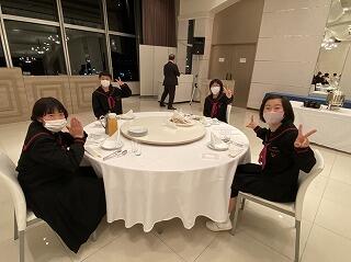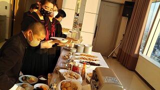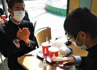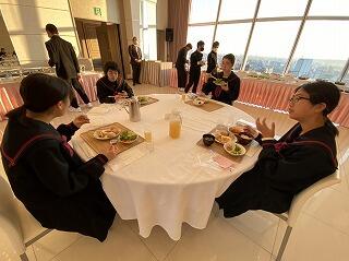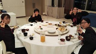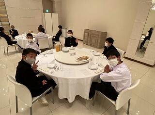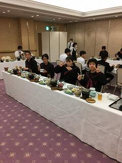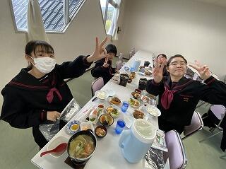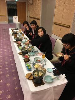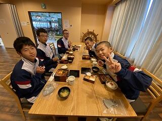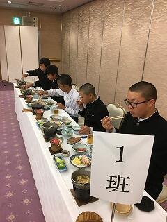 修学旅行最終日、朝の散歩を済ませて朝食です。みんな元気です。