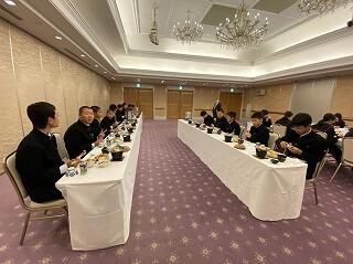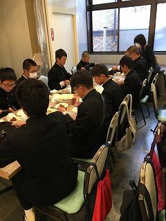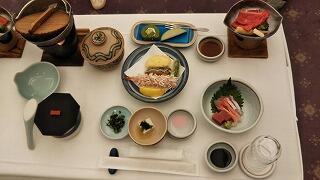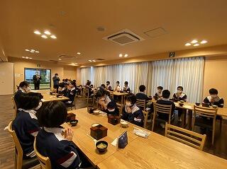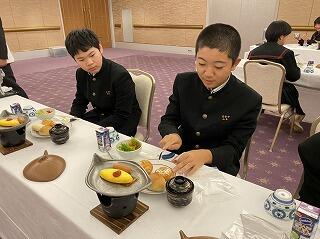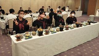 夕食です。コロナ対策もあり、お重になっていました。充実した食事にみんな喜んでいました。