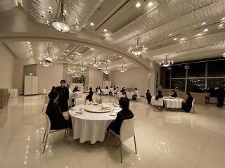 夕食です。場所の雰囲気に緊張しています。