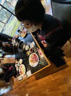 昼食です。修学旅行最後の食事は焼き肉です。