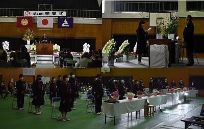 3月16日(火)に第74回卒業式を挙行しました。新型コロナウイルス拡大防止の観点から、在校生は教室でZoom配信、来賓不在、内容も縮減しての実施でした。