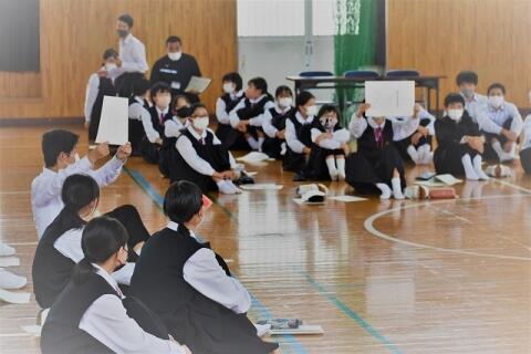 当日は「学校生活の質を向上させ、将来に活かすためには、どのような取組をしたらよいか」という議題で全校生徒で討議を行いました。特に、先輩・後輩のよりよい関係づくりと身だしなみについて、生徒たちは活発に議論していました。その姿はとても頼もしかったです。今回話し合ったことを実践し、さらにより良い真幸中となっていくと思います。