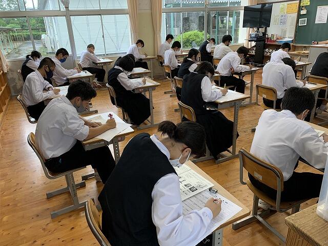 先ほど教室の様子を見に行くと、どの生徒も真剣にテストに向かっていました。