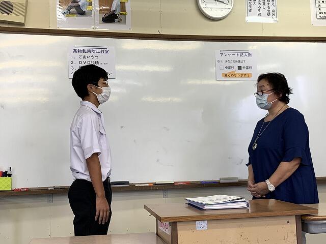 生徒の感想では、「病院でもらう薬も説明通りに正しい飲み方をしないとそれも乱用に含まれることを初めて知った」「薬物を使うと、現実と過去の記憶の区別がつかなくなったり、感情のコントロールができなくなったりすることが印象に残った」「薬物乱用の周りへの影響などを学び、自分だけの問題ではないんだなと実感した」「誘われたときの断り方がとても勉強になった」「1人で悩まず親や先生に相談することを忘れないようにしたい」「ニュースなどで取り上げられる人たちの頼るすべが薬だったのが悲しい。身近で苦しんでいる人に気づける人になりたい」などがあり、多くのことを学び、考える時間になったようです。