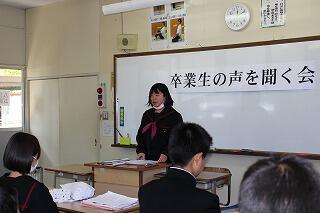 この日に合わせて、2年生では「卒業生の声を聞く会」を設定しました。